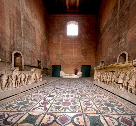 The interior is austere, but its grandeur is striking. The original floor in opus sectile, made with colored marble slabs arranged to create geometric patterns, is still there. This is not a simple mosaic: opus sectile used precious stones and materials from all over the Empire, a testament to the vastness of its trade network and the refined aesthetic that also characterized political spaces.