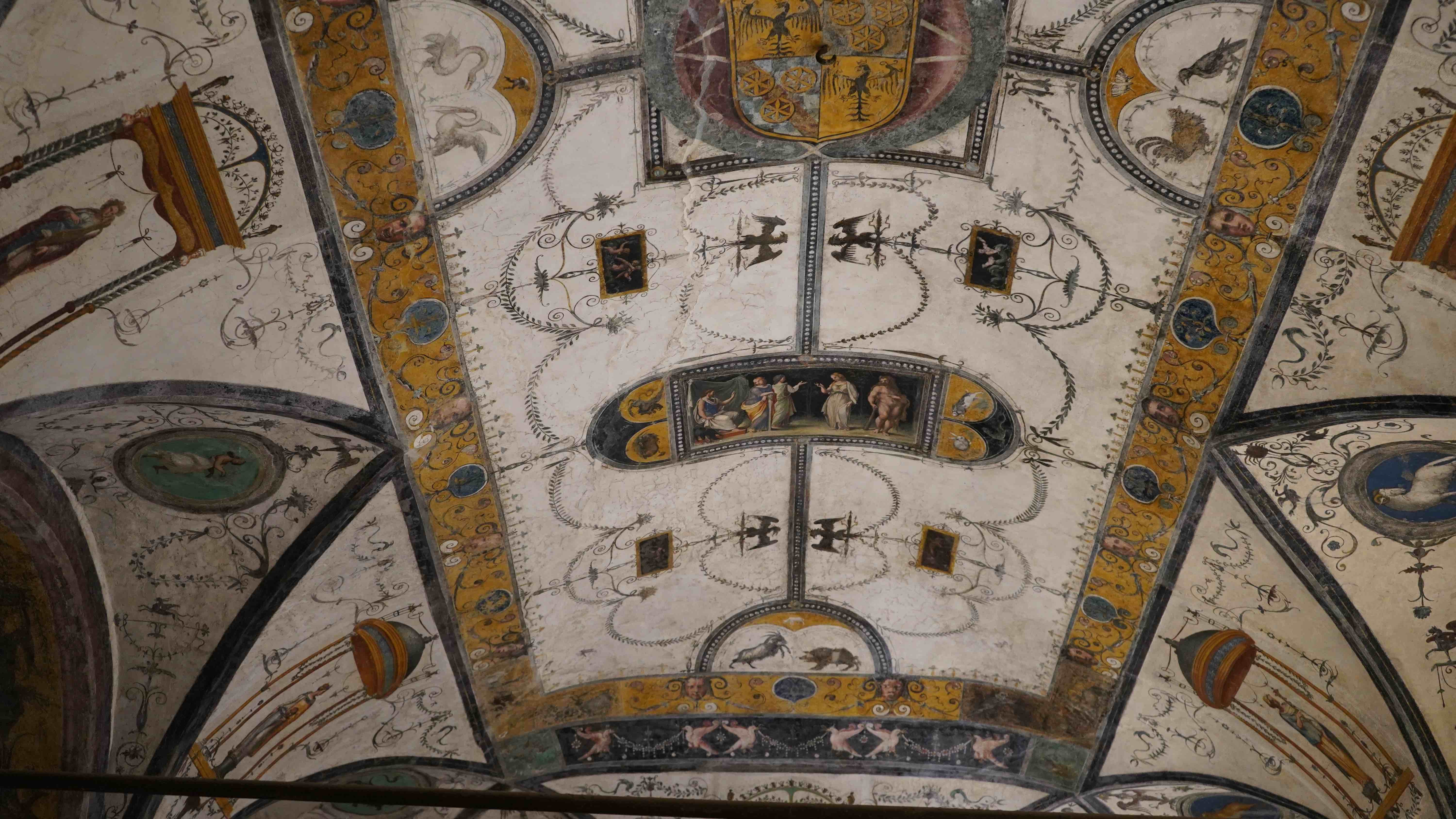 Tra i punti salienti c'è la Sala delle Maschere, chiamata così per le maschere teatrali raffigurate nei suoi elaborati affreschi. Questa sala presenta colonne dipinte, fregi intricati e pannelli dai colori vivaci, che contribuiscono a creare l'illusione di un palcoscenico teatrale. L'uso della prospettiva e delle ombreggiature in questi dipinti riflette le sofisticate tecniche artistiche dell'epoca.