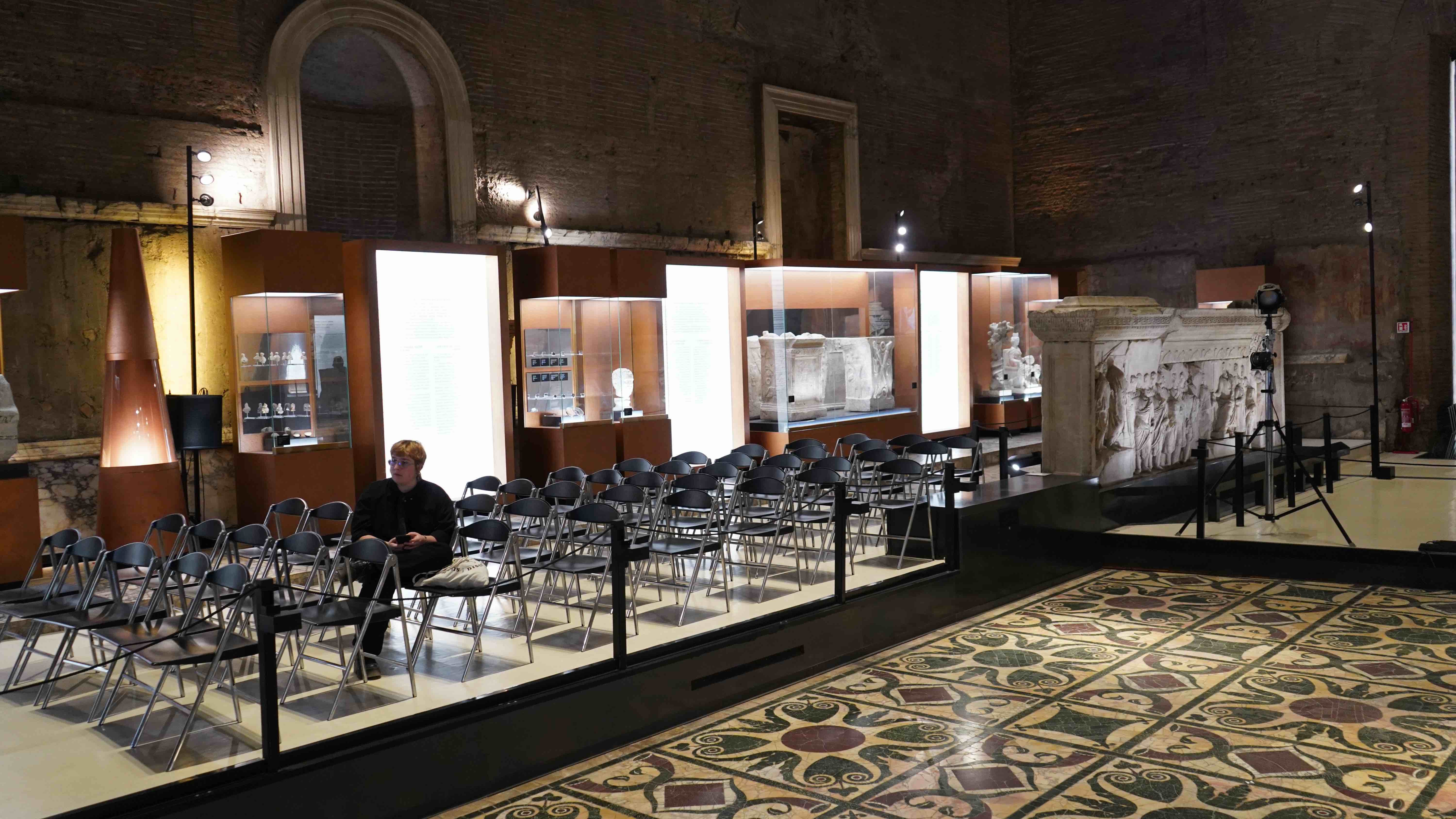 All'interno, i visitatori possono ancora vedere il pavimento originale in marmo, risalente all'epoca di Diocleziano (IV secolo d.C.), insieme ai banchi di legno ricostruiti dove un tempo sedevano i senatori. La sala era progettata per garantire l'acustica e l'autorità: i senatori sedevano in file lungo i lati, mentre il magistrato che presiedeva o l'imperatore si sedeva su una piattaforma rialzata, assicurando ordine e controllo. A differenza delle rappresentazioni drammatiche dei film, le riunioni del Senato erano spesso altamente strutturate, con regole severe sui tempi di parola e sull'ordine dei lavori.